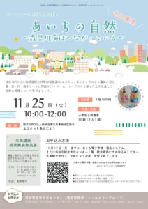 あいちウィーク(県民の日学校ホリデー)の期間に開催する、小学生と保護者の方を対象にした単発講座の追加募集を行います。