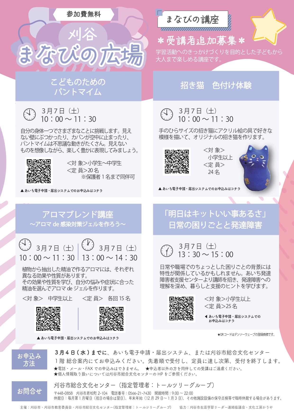2026年2月24日 【追加募集】刈谷まなびの広場 受講者募集